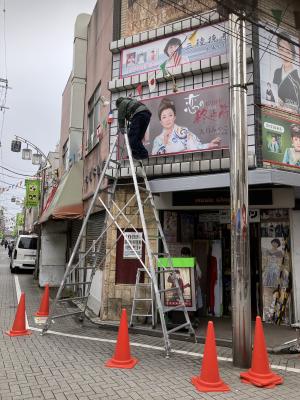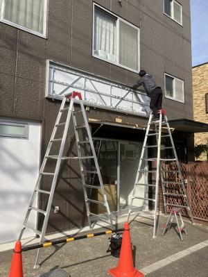内照式看板を設置中!